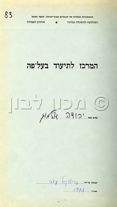 בראשית שנות ה-70 של המאה ה-20,  יזם מר ישעיהו אברך, ראש המחלקה להשכלה גבוהה בהסתדרות הכללית את הקמת המרכז לתיעוד בעל פה,  בנושא מורשת תנועת העבודה הארץ ישראלית.  מטרתו הייתה לבצע רישום היסטוריוגרפי של מידע, שימסר מפי אנשי תנועת העבודה,  שחיו ופעלו במהלך שנותיה,  החל מראשית המאה ה- 20.  בדרך זו קיווה להבטיח שימור של עובדות והתרחשויות היסטוריות, העלולות להישכח מהזיכרון ההיסטורי של התנועה עם מותם של וותיקיה.