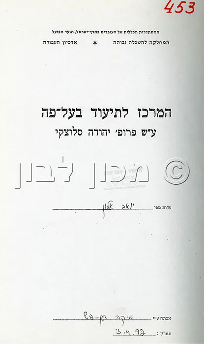 את רעיון הקמת המרכז הגה פרופ' יהודה סלוצקי (סלוא), מגדולי החוקרים של ההיסטוריה היהודית בת זמננו בכלל, ושל תולדות היישוב ותנועת העבודה בפרט.  עם פטירתו (1978), נקרא המרכז לתיעוד על שמו.
